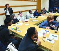 Co-Director of Programming Carolyn Normandin of the ADL instructs the students on hate crimes.