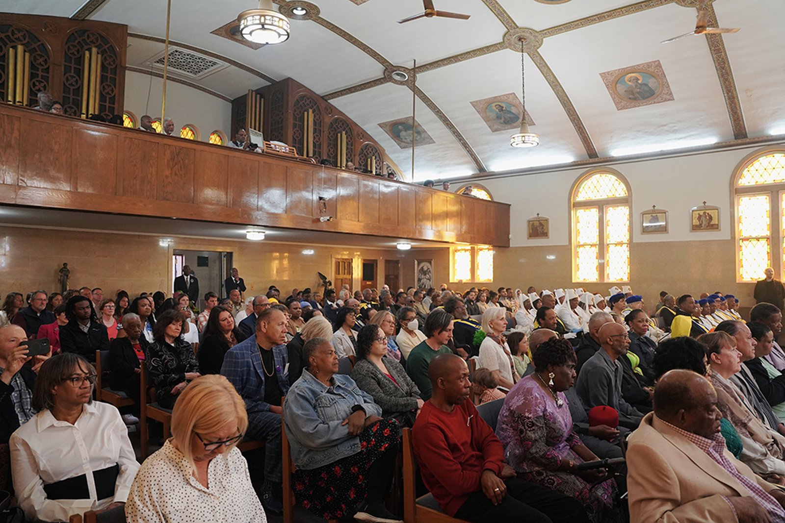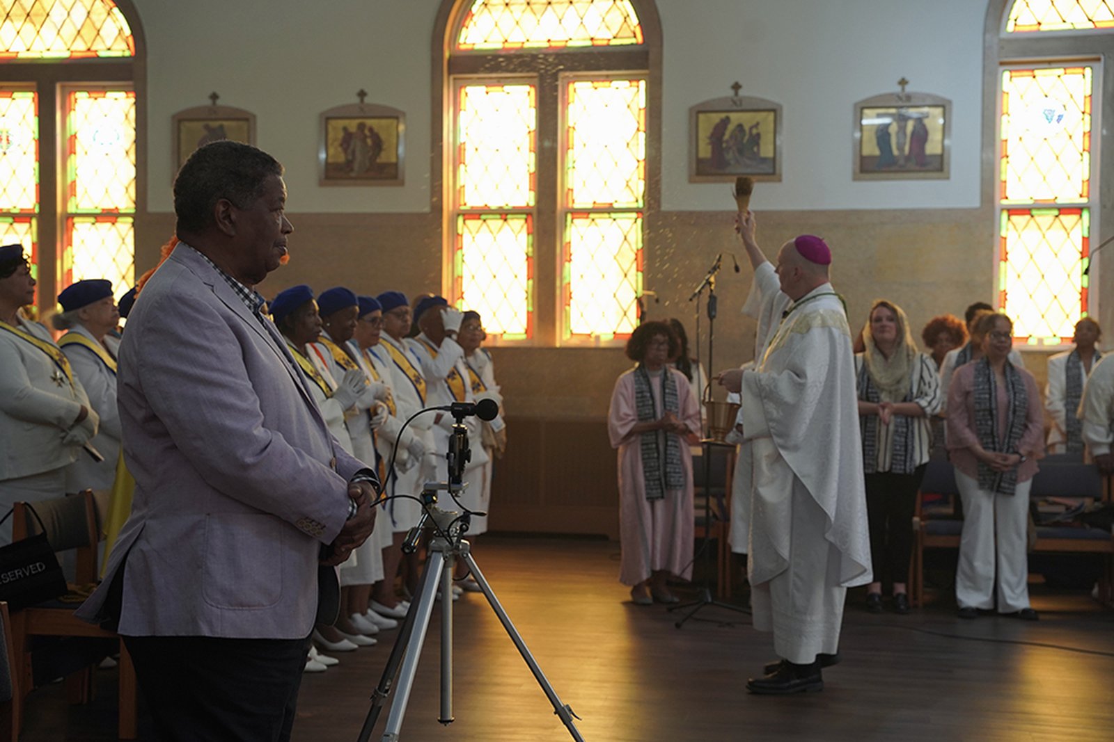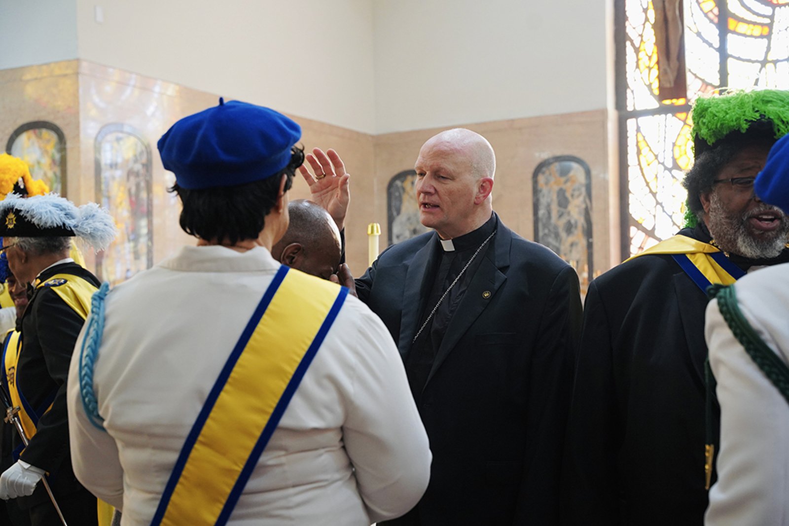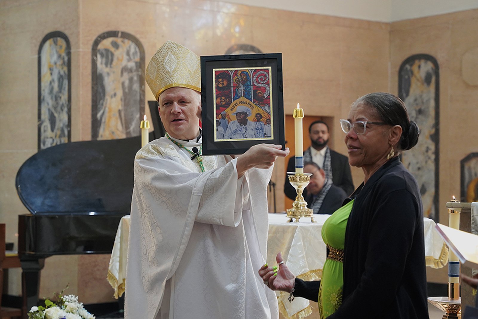 The event brought together parishioners, clergy, and guests for an afternoon of worship and fellowship in the city, among them Isaiah McKinnon, Ph.D., former deputy mayor of Detroit, and Ron Teasley, 98, a former Negro Leagues baseball player, who greeted the archbishop after Mass.