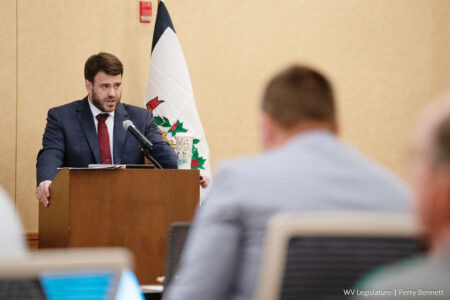 - Peter Shirley, deputy secretary for the West Virginia Department of Revenue, briefs lawmakers Monday at Stonewall Resort in Lewis County about the condition of state finances. (Photo courtesy of WV Legislative Photography)
