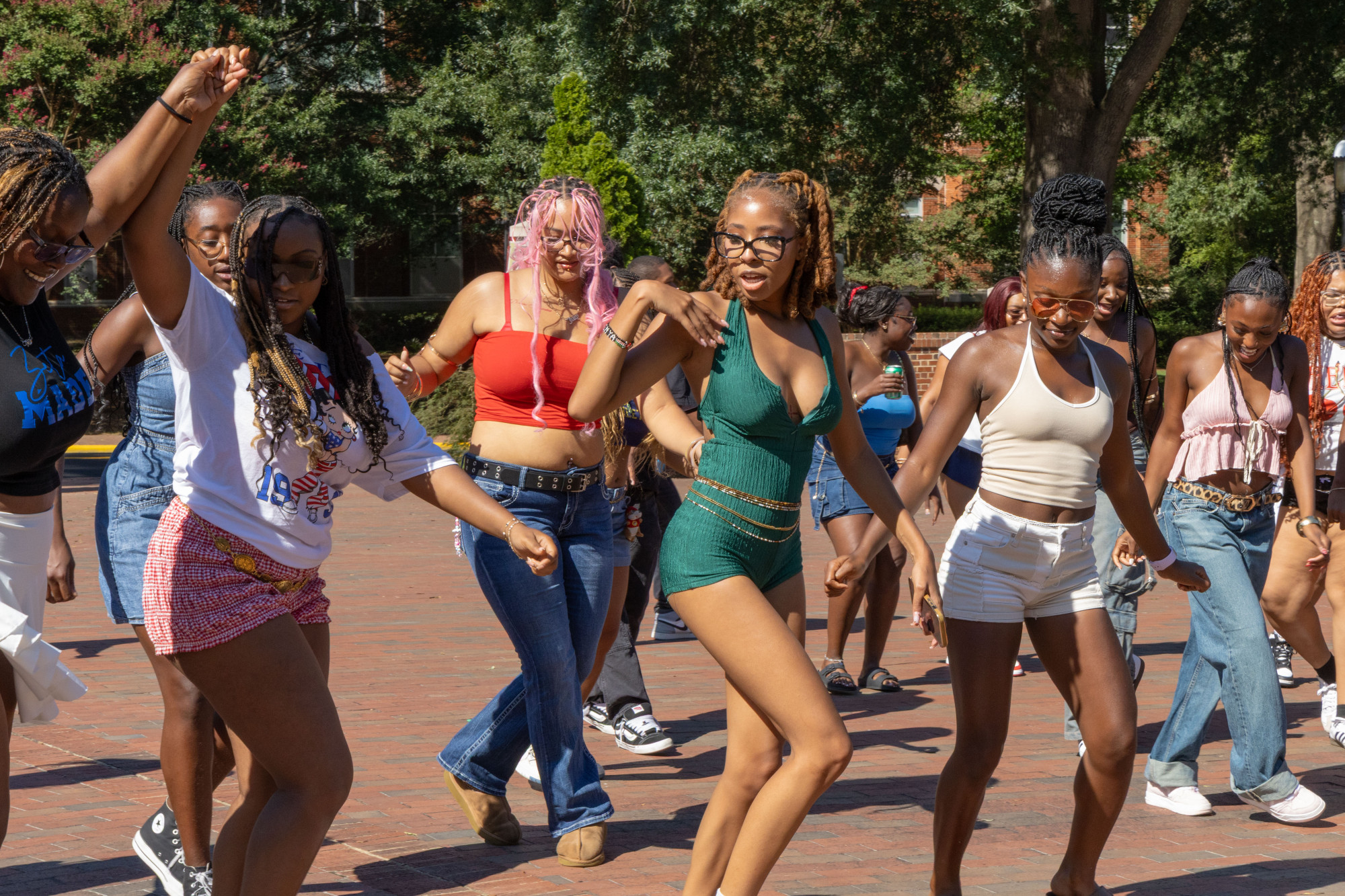 Wade was one of several Alpha Phi Alpha members at the event. Alpha Phi Alpha is one of six fraternities and sororities at Elon in the National Pan-Hellinic Council, also known as the Divine Nine. Many fraternity and sorority members were at the commons, proudly wearing organization merchandise and moving along to the music.