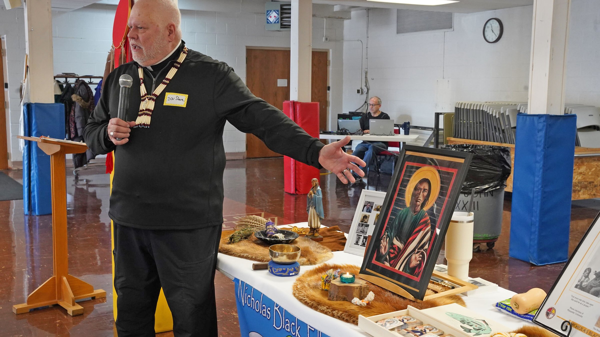 Following a smudging ceremony, where incense is burned and passed through the assembly as a welcoming ritual, speakers gave presentations on St. Kateri Tekakwitha and Servant of God Nicholas Black Elk, examining how they incorporated their American Indian spirituality and identity with Christian discipleship.
