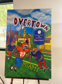 A student painting pays tribute to football in Overtown, celebrating sports as a cornerstone of neighborhood pride.