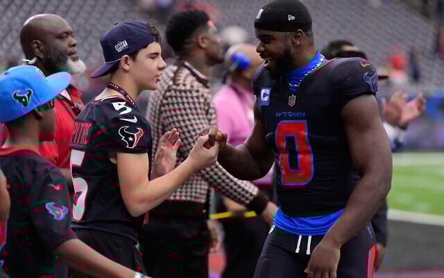JTA — In his postgame interview on Monday night, Houston Texans linebacker Azeez Al-Shaair said the things you’d expect to hear, like crediting his teammates for a dominant playoff win and praising his coach.